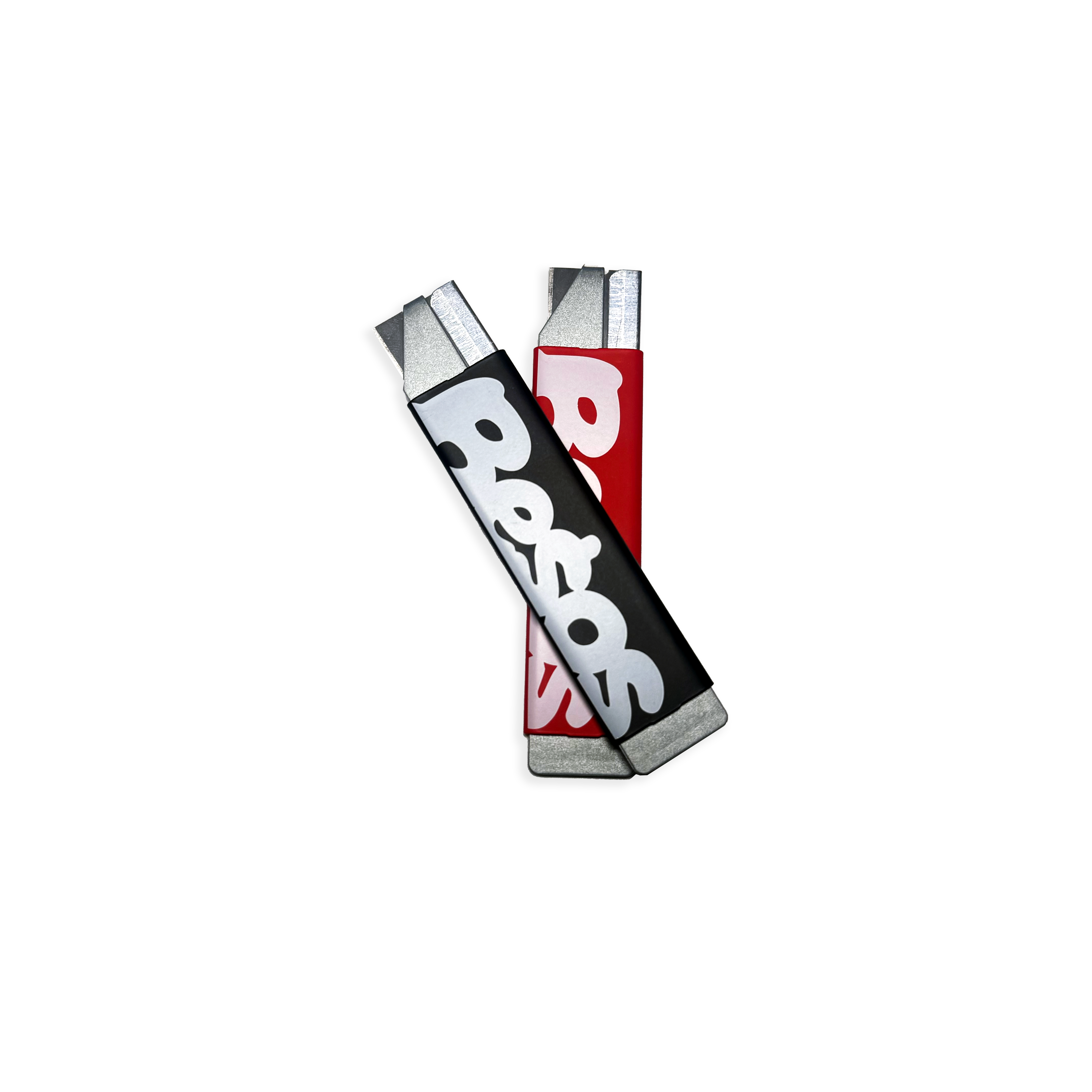 Two manual cutters. One Be$os red, one black. Matte finish with raised Be$os logo. Comes sealed in custom Be$os packaging.